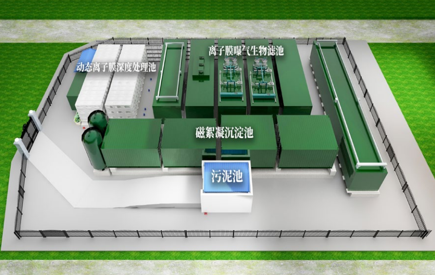 核心工艺:动态离子膜水处理技术 + 离子膜曝气生物滤池 + 磁絮凝沉淀工艺