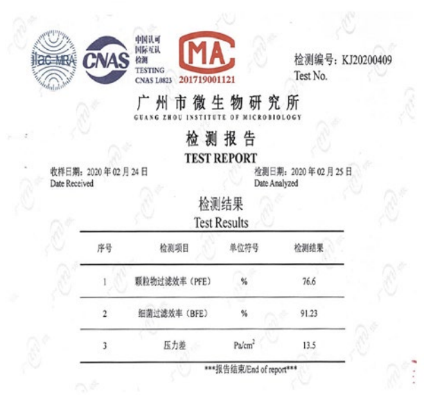 重离子微孔膜防护口罩是由疏水层、支撑层、重离子微孔膜和亲水层四层材料复合而成,细菌过滤效率约 90% ,颗粒过滤效率约 75% ,呼吸阻力约 13 帕,产品可承受 100℃ 的高温水洗,经权威第三方检测,产品经消毒后可反复高温水洗 20 次而不影响过滤性能,从经济性和环保性都优于目前市场上的一次性口罩。